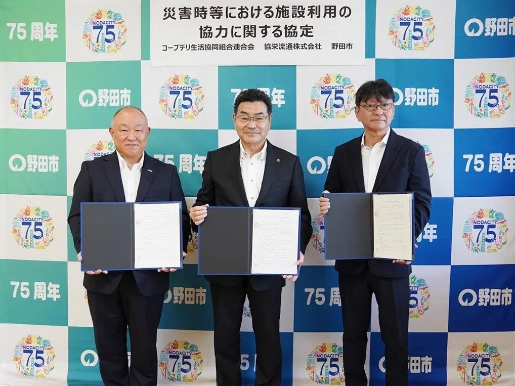千葉県の野田市において、コープデリ生活協同組合連合会(以下、コープデリ連合会)と協栄流通株式会社、そして野田市が一つの目的のために手を結びました。それは、災害時における避難場所確保のための協定です。この歴史的な締結式は、2023年10月2日に野田市役所で執り行われ、市の鈴木有市長、コープデリ連合会の熊﨑伸理事長、協栄流通株式会社の遠藤拓雄専務取締役が出席しました。