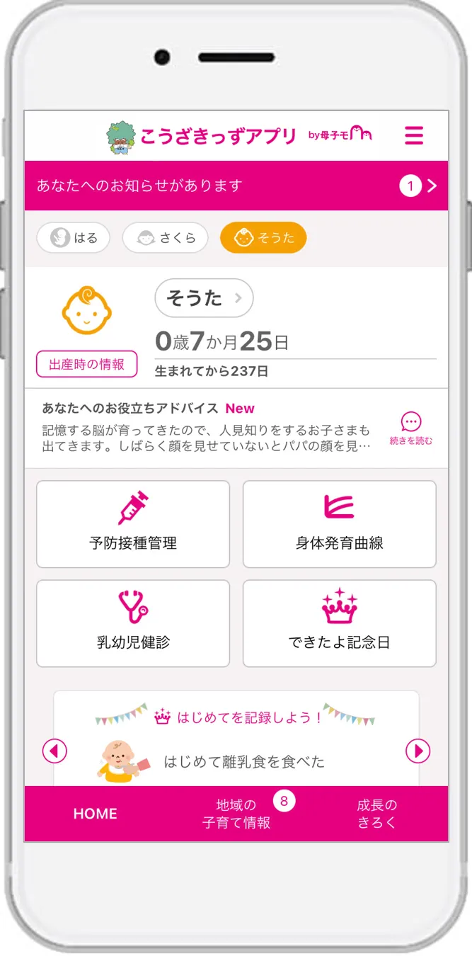 国や自治体からの重要なお知らせや、出産・育児に関する知識の提供もアプリで受けられるため、忙しい中でも確実に情報をキャッチできる点が魅力です。感染症などで環境が変化した際も、自治体からの注意喚起や保健師のアドバイスを通じて、安心して育児に専念できるよう支援します。
