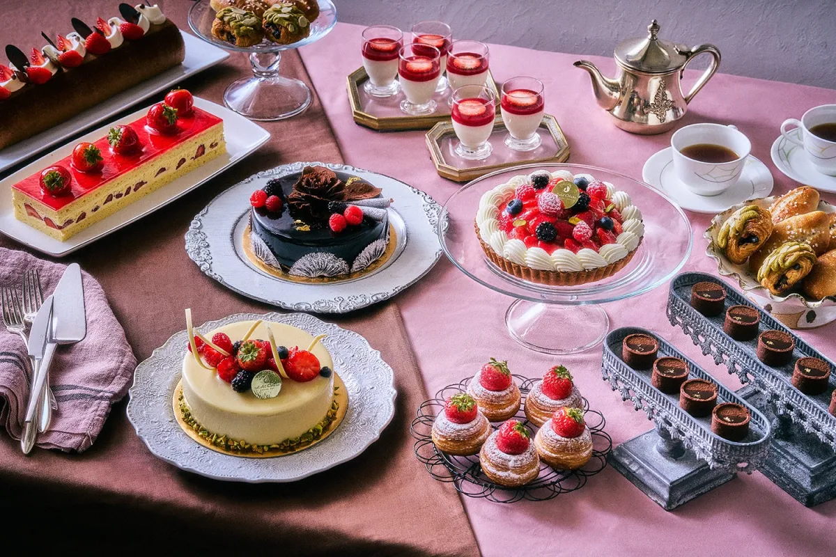 ブッフェでは、14種類以上のスイーツとパンが提供され、訪れるゲストを魅了します。注目はフランスの伝統的なケーキ「フレジェ」。これには、苺のフレッシュな香りとバタークリームが見事に組み合わされています。また、ラズベリーの酸味がアクセントの「ベルギー産チョコレートムース」、色とりどりの「苺のタルト」など、視覚と味覚を同時に楽しめるラインナップです。