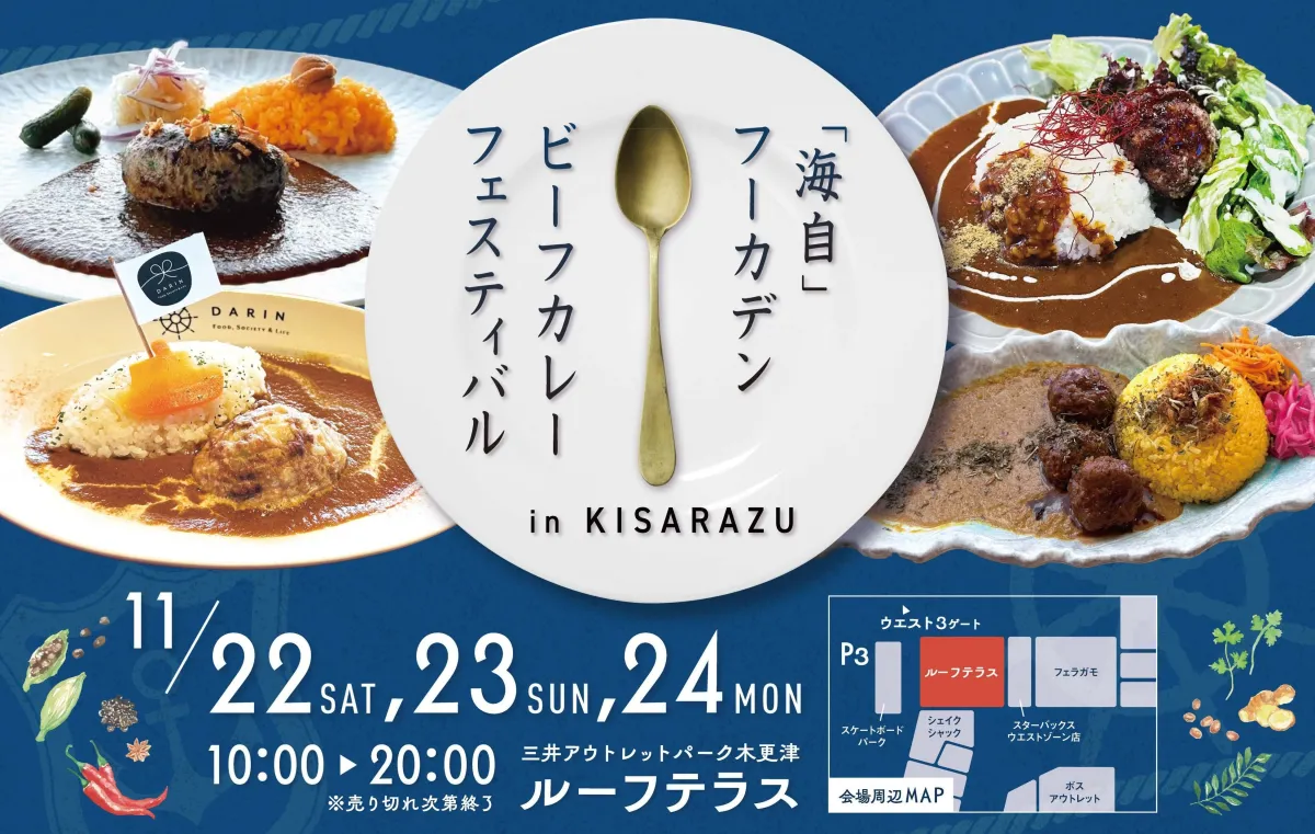 2025年11月22日(土)から24日(月・祝)までの3日間、「海自」フーカデンビーフカレーフェス in KISARAZUが千葉県木更津市の三井アウトレットパークで開催されます。このフェスでは、地元の魅力あふれるカレーが一堂に集まり、参加者にとって特別な食の体験を提供します。