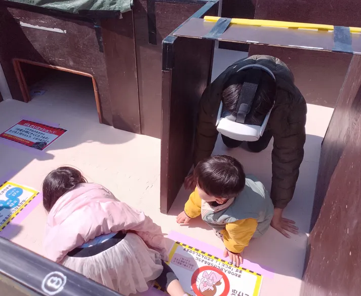 来場者が楽しめるコンテンツとして、AR(拡張現実)技術を用いた「GENSAIめいろ」がバージョンアップ。煙が充満する中での避難体験ができ、低い姿勢でゴールを目指すというリアルな状況を体験します。さらに、VR(仮想現実)を使った「火災からの脱出体験」では、突然の地震に見舞われた際の模擬体験ができるため、万が一の際の行動について深く理解を得られるでしょう。