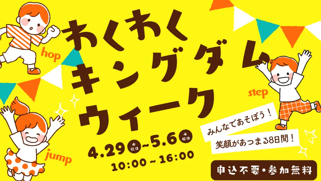 市原市にある「weほーる」では、ゴールデンウィーク期間中の4月29日(水・祝)から5月6日(水・休)まで、「わくわくキングダムウィーク」イベントが開催されます!しっかりと遊び尽くせるプログラムが盛りだくさんで、親子で楽しい思い出作りができる絶好のチャンスです。