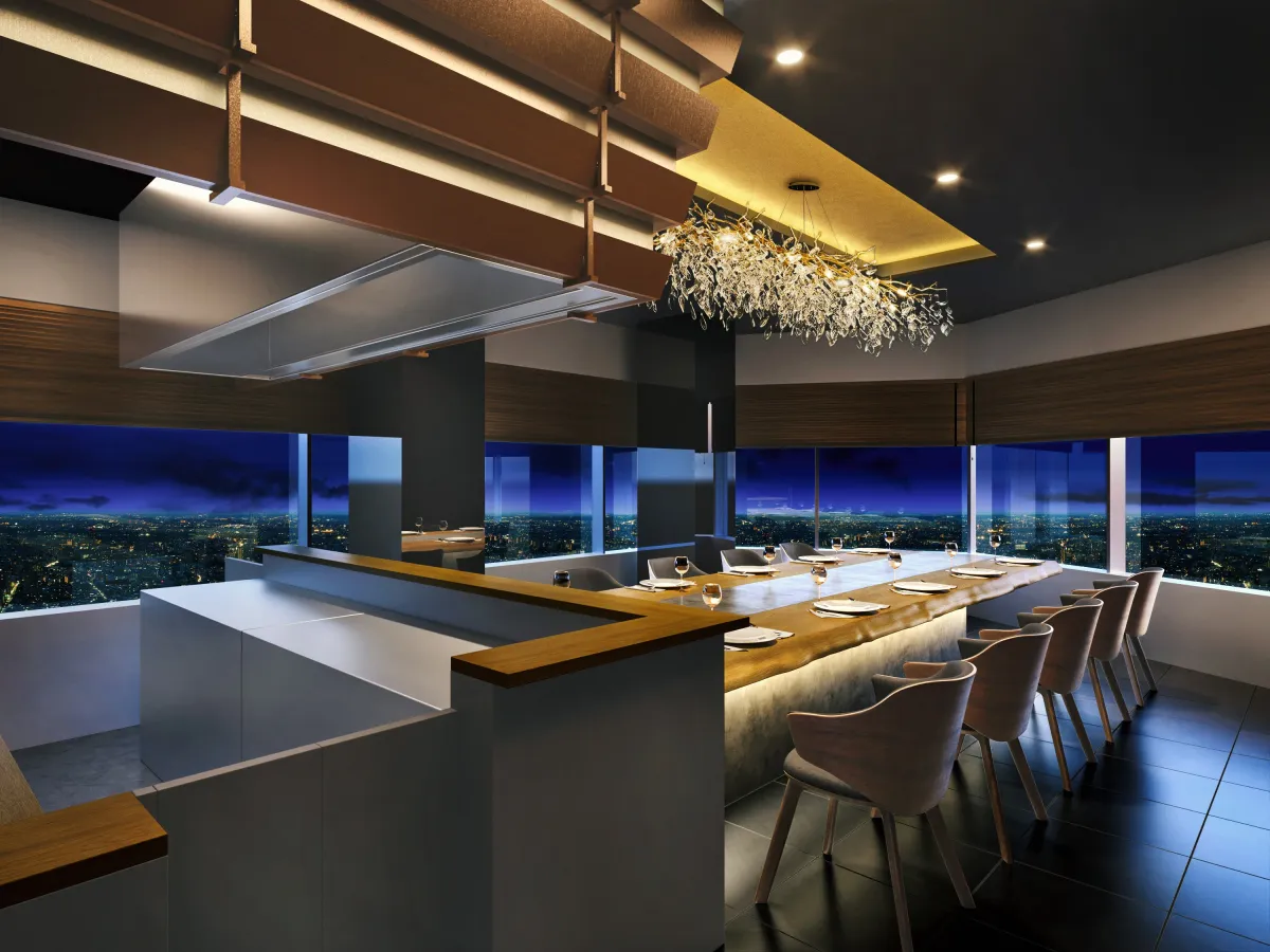 新しい鉄板焼「THE 七海」で、絶景を楽しみながら、特別な料理の数々を心ゆくまでお楽しみください。お友達や大切な方との食事、特別なビジネスシーンにもぴったりの場所です。