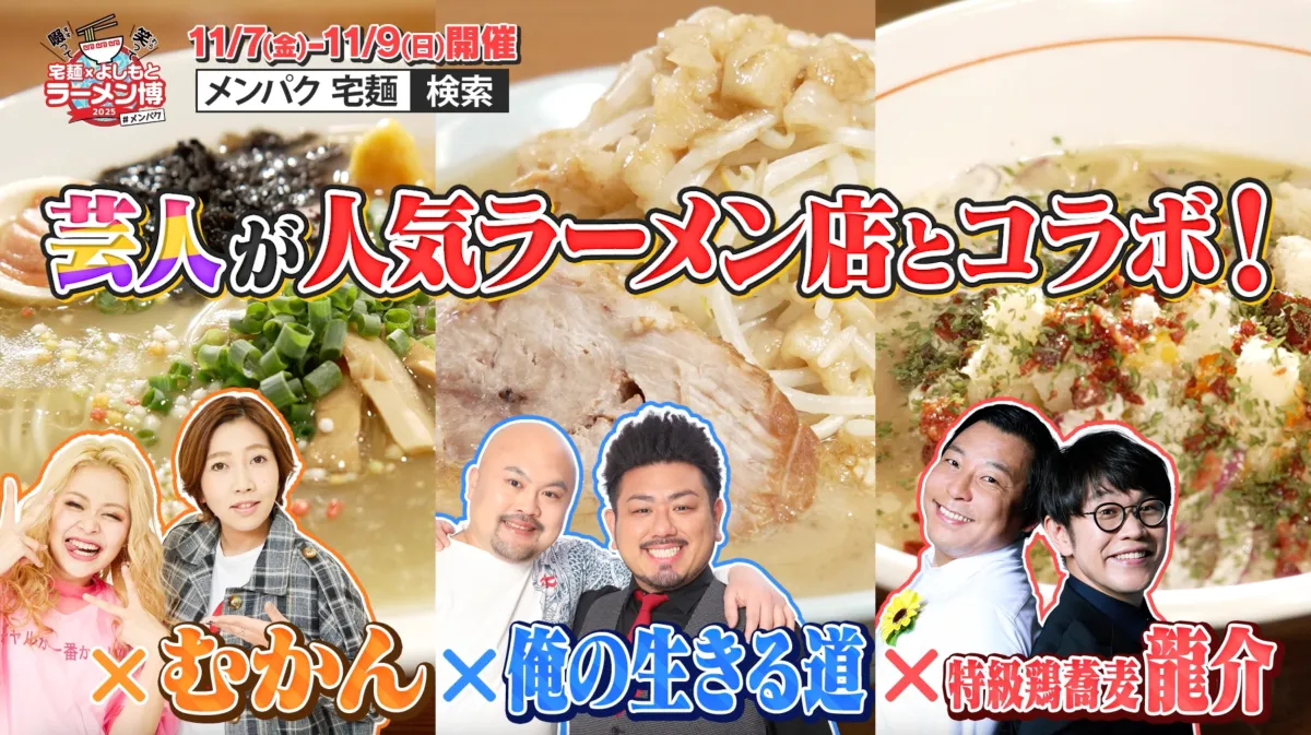 国内最大級のラーメン専門通販サイト「宅麺.com」を運営するグルメエックス株式会社が、吉本興業グループの株式会社FANYと共同で、いよいよ「啜って 笑って 宅麺 × よしもと ラーメン博 #メンパク」を開催します。このイベントは、ラーメンという日本の文化とお笑いを融合させた新しい形の祭典で、2025年11月7日(金)から9日(日)までの3日間にわたって行われます。
