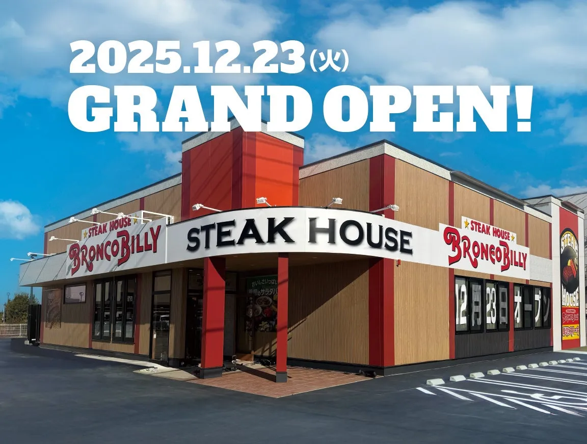 12月23日、ブロンコビリー小仙波店のオープンを皆様で楽しみましょう!新しい名物料理と共に、心温まる素敵なひとときをお過ごしください。